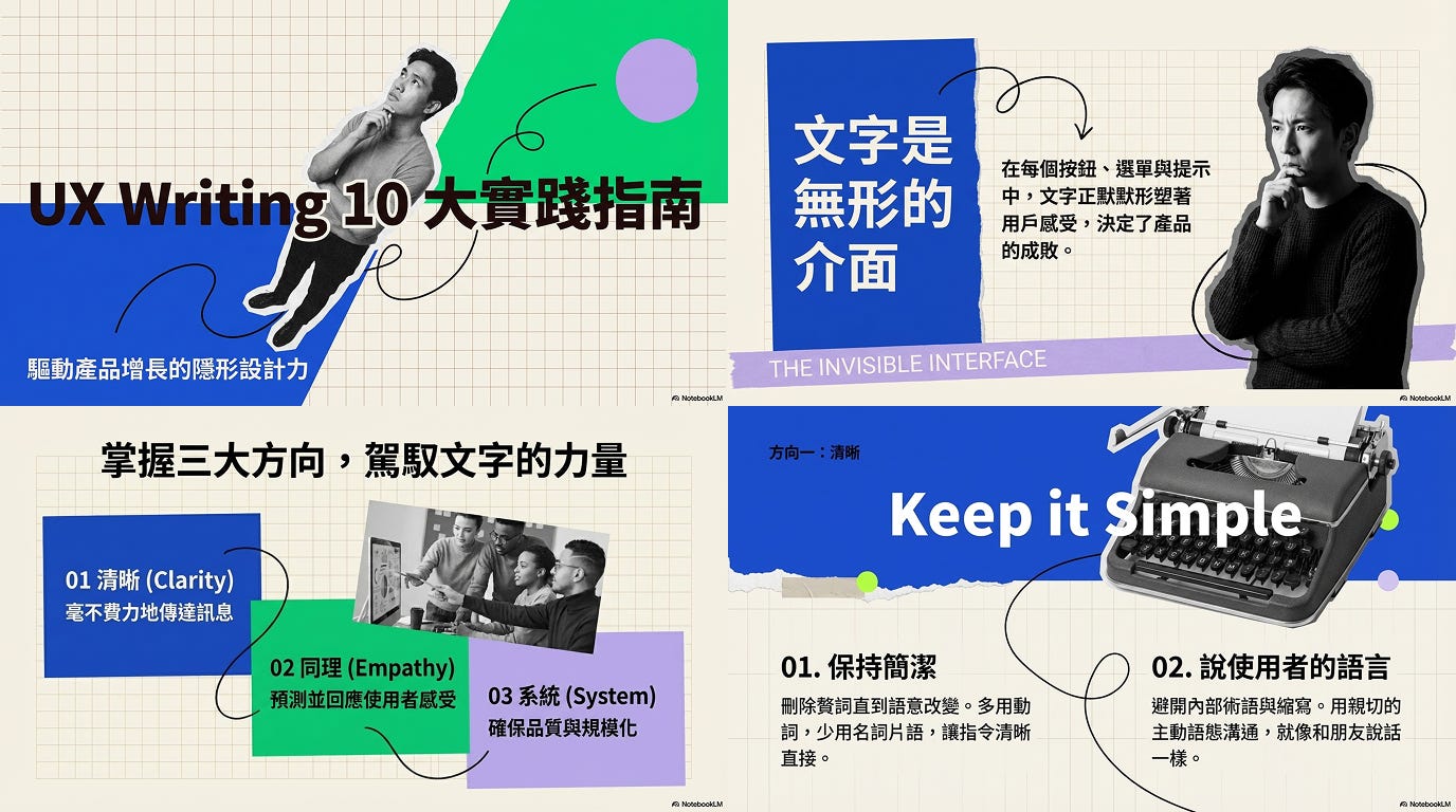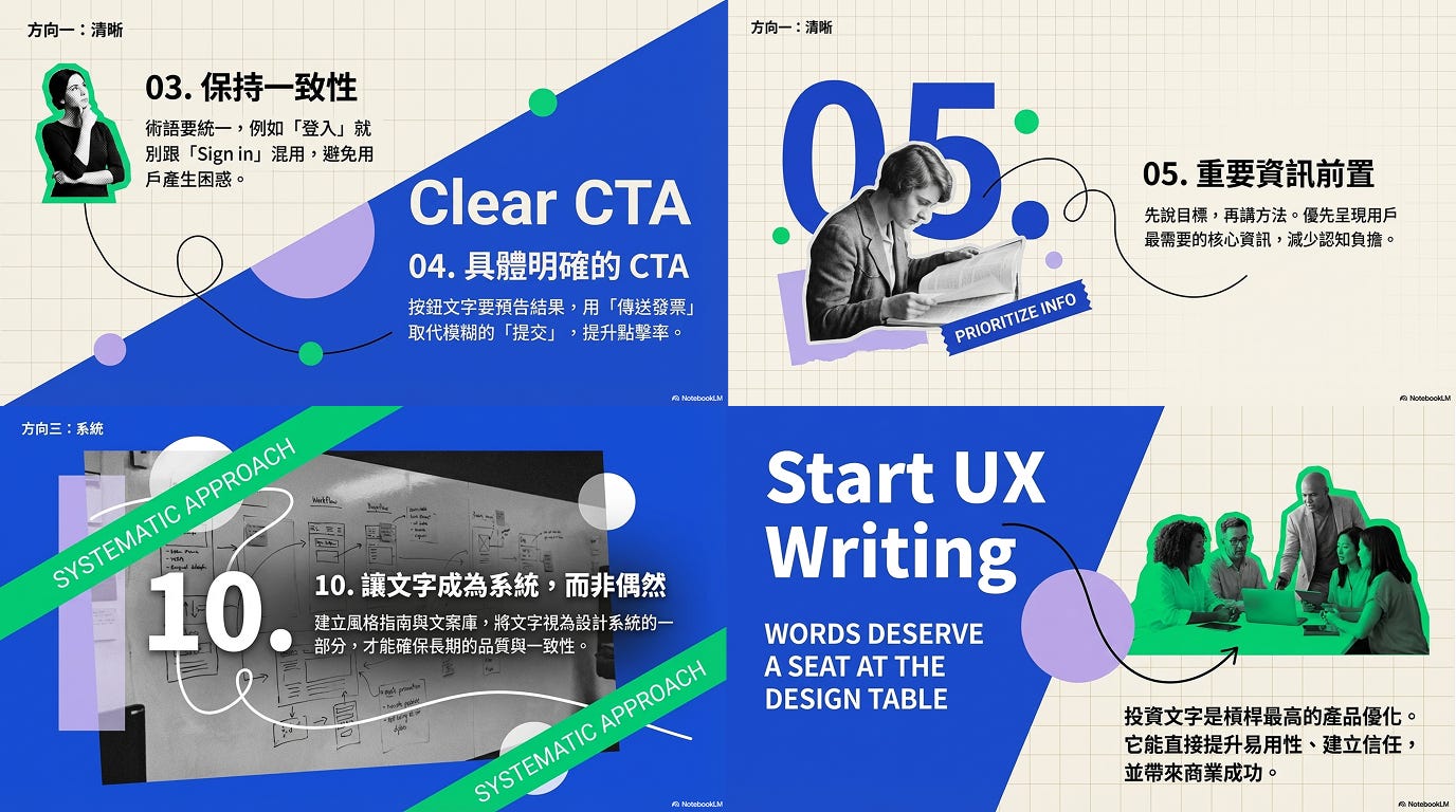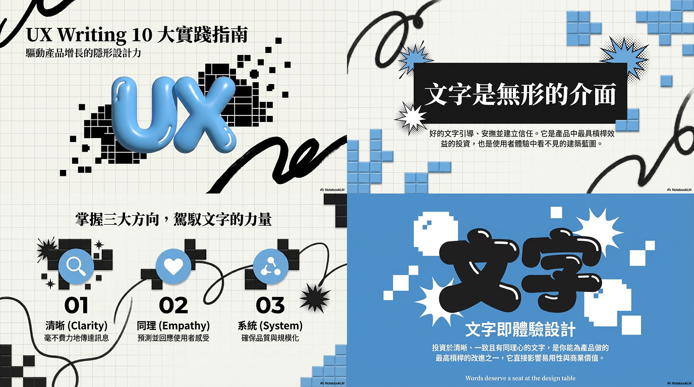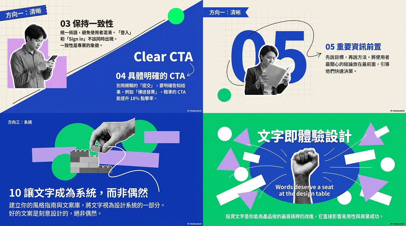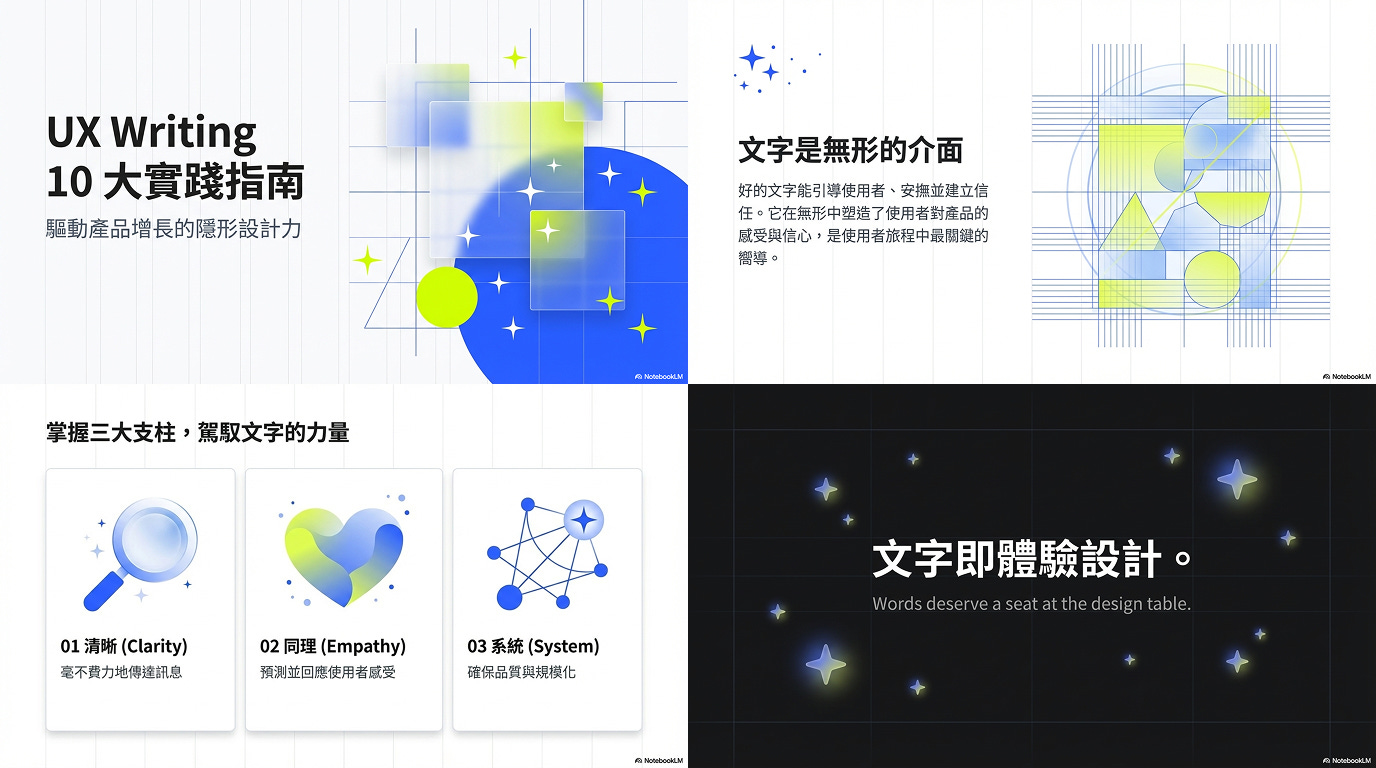 NotebookLM 有時會產生錯字或字體無法辨識的情況,這時用 Canva 或 PowerPoint 直接修改,會比讓 NotebookLM 重新生成來得更有效率。建立屬於你的靈感庫
